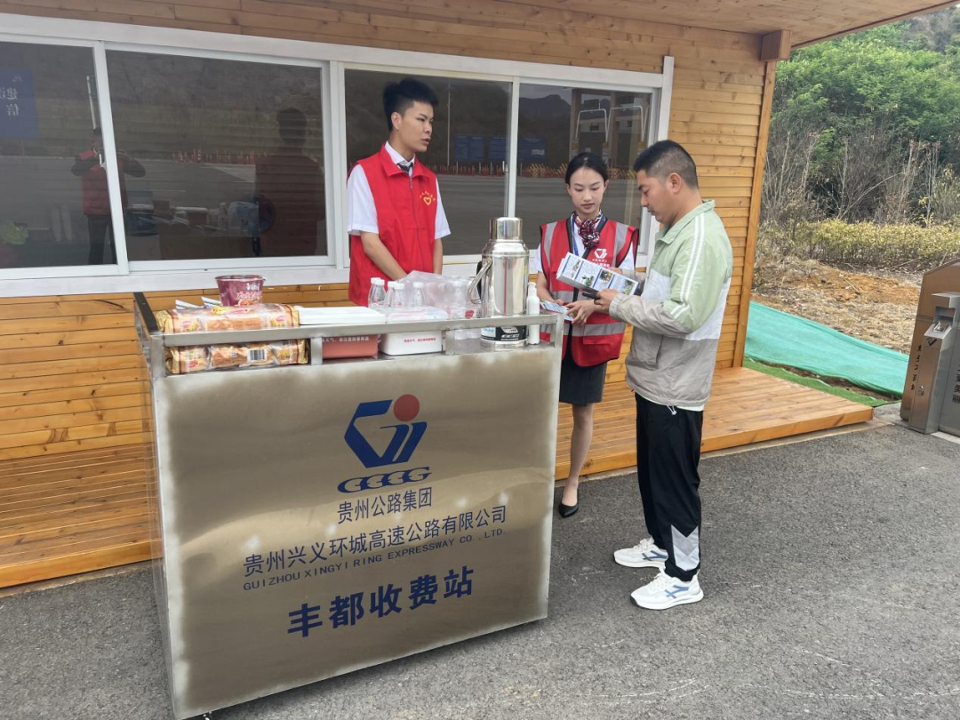 “通行遇困难,,,,,,请找红背心”。。。。。。“五一”期间,,,,,,兴义环高沿线服务区和收费站,,,,,,随时都能看到“红背心”不停地穿梭在车流中。。。。。。
