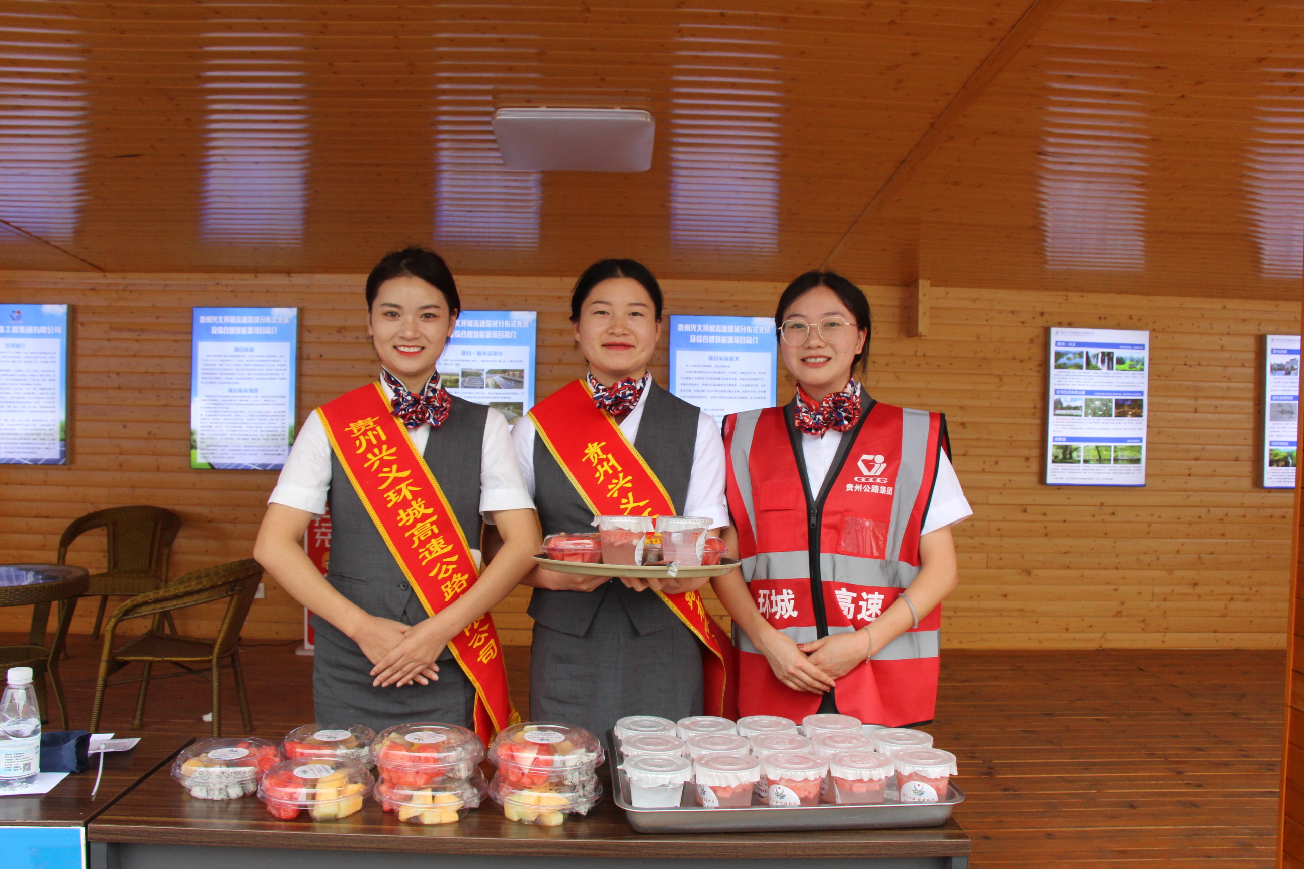 自9月14日起,,,,,,,为进一步护航山地旅游大会,,,,,,,全力打造“好客兴义”形象,,,,,,,兴义环高组织开展了面向外地来黔游客的志愿服务活动。。。。。。。通过在丰都收费站“心光驿站”设立“大会志愿服务”点,,,,,,,向来黔旅客免费赠送饮料、矿泉水以及水果拼盘等物资。。。。。。。志愿者们还热情地向外来游客提供交通指引、游玩攻略等咨询服务,,,,,,,让外地来黔游客有宾至如归的感觉。。。。。。。