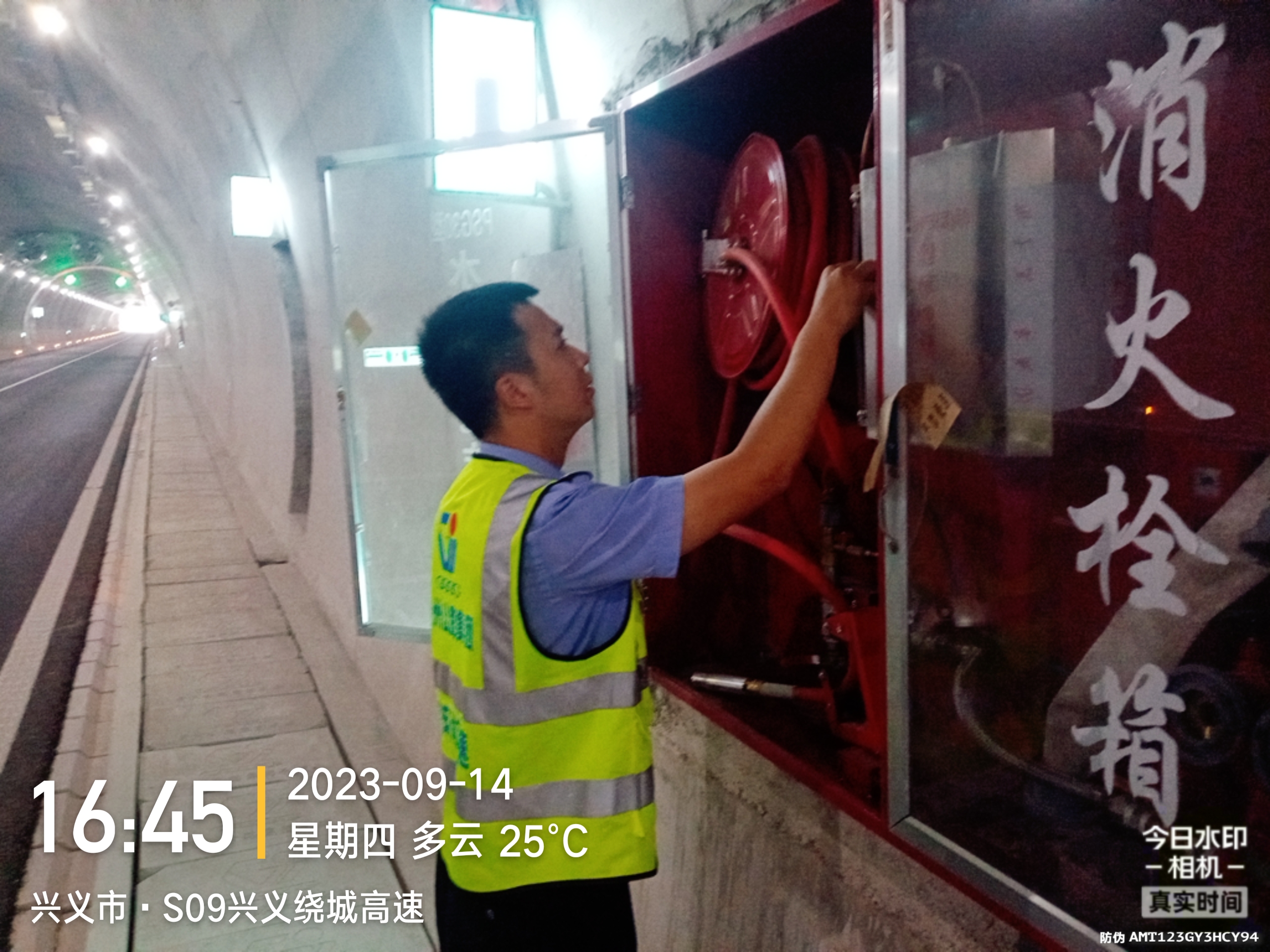 兴义环城高速作为兴义市的重要交通枢纽,,,,,,,承载着较为重要的交通运输任务。。。。。。。为做好安全保障工作,,,,,,,在国际山地旅游大会开展前期,,,,,,,兴义环高特组织人员从横向到边、 纵向到底地对高速凯时优质运营商消防设施设备、隧道照明系统以及桥梁边坡进行了全面排查。。。。。。。检查人员针对发现的安全隐患逐一登记,,,,,,,并现场制定治理措施,,,,,,,确保隐患点段得到及时有效整治,,,,,,,坚决遏制安全事故的发生,,,,,,,为2023国际山地旅游暨户外运动大会提供了安全畅通的通行环境。。。。。。。