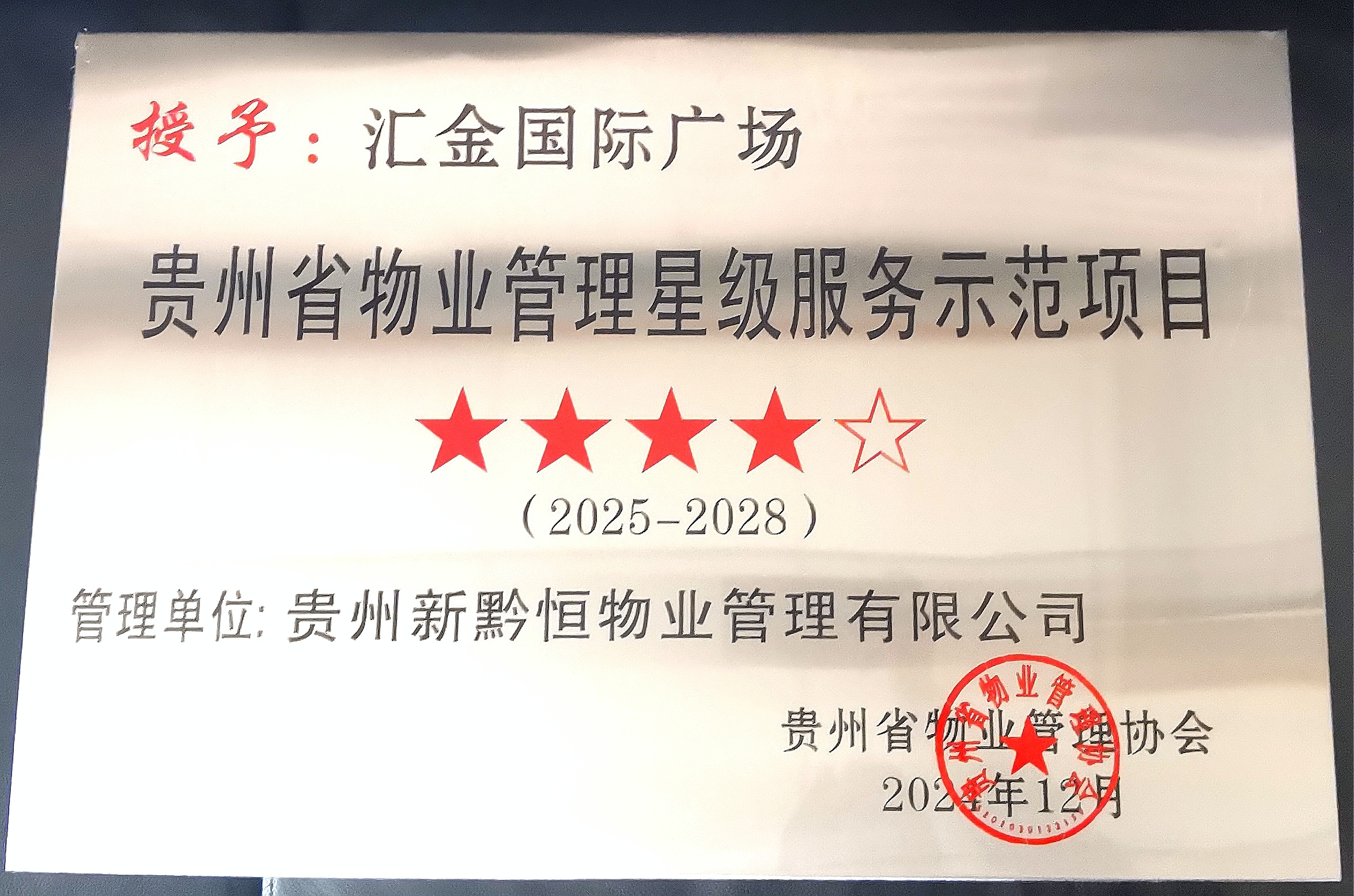 作为深耕物业管理行业20余年的企业,,,,,,,,新黔恒物业公司凭借专业的服务品质、杰出的贡献以及广泛的社会认可,,,,,,,,被授予2024年度“突出贡献会员单位”称号;;;;;;;;新黔恒物业公司管理的汇金国际广场商务楼项目顺利通过专家组现场复审考评,,,,,,,,继续保持“贵州省物业管理服务星级示范项目(四星级)”称号;;;;;;;;公司职工因在中铁建物业杯贵州省物业管理行业第五届职工职业技能竞赛中表现出色,,,,,,,,荣获“首席物业管家”称号。。。。。。