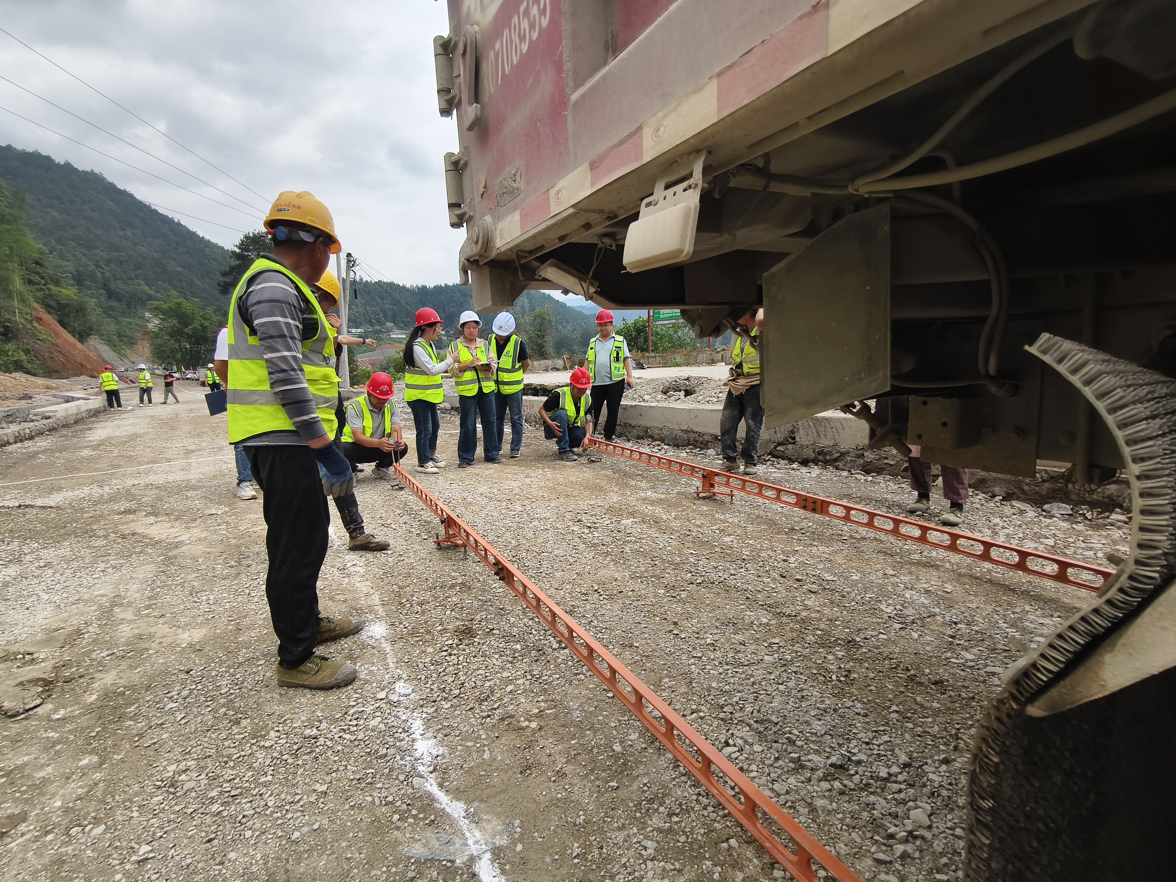 G321三都坝湾2标路线总长11.793公里,,,,,,,本次路基交验的路段总长1.4公里,,,,,,,路基宽度8.5米。。。。。验收组严格按照检验评定标准,,,,,,,对路基压实度、弯沉值、平整度、高程、横坡等指标进行全方位检测,,,,,,,交验路段各项数据均符合设计及规范要求,,,,,,,一次性通过交工验收。。。。。