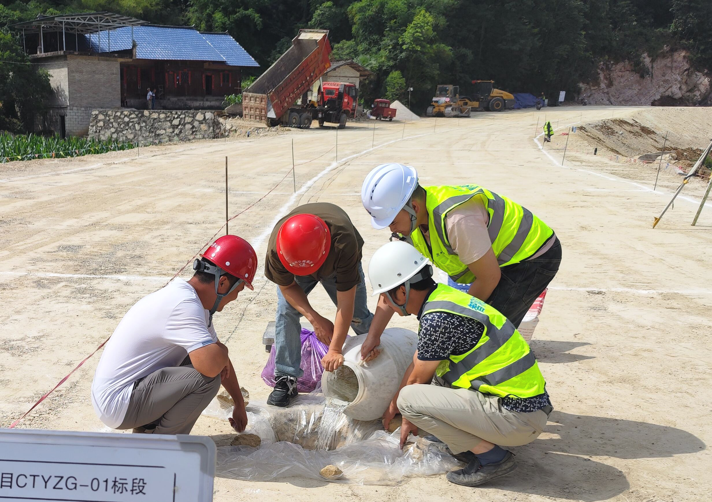 本次施工的路基试验段全长200米,,,,,,,,路基宽度11米。。。。。。。填筑施工前,,,,,,,,项目部对施工工艺、关键技术指标、质量重难点控制进行现场技术交底,,,,,,,,严格把关路基填筑厚度、填料粒径及颗粒级配、碾压质量、边坡修整及覆盖等关键工序,,,,,,,,以全过程标准化管理落实凯时优质运营商工程质量验收标准。。。。。。。施工过程中,,,,,,,,项目团队严格执行自检、互检、专检“三检制”,,,,,,,,对填料颗粒级配、松铺厚度、碾压遍数等核心参数进行实时监测与数据记录,,,,,,,,确保每道工序均符合规范要求。。。。。。。